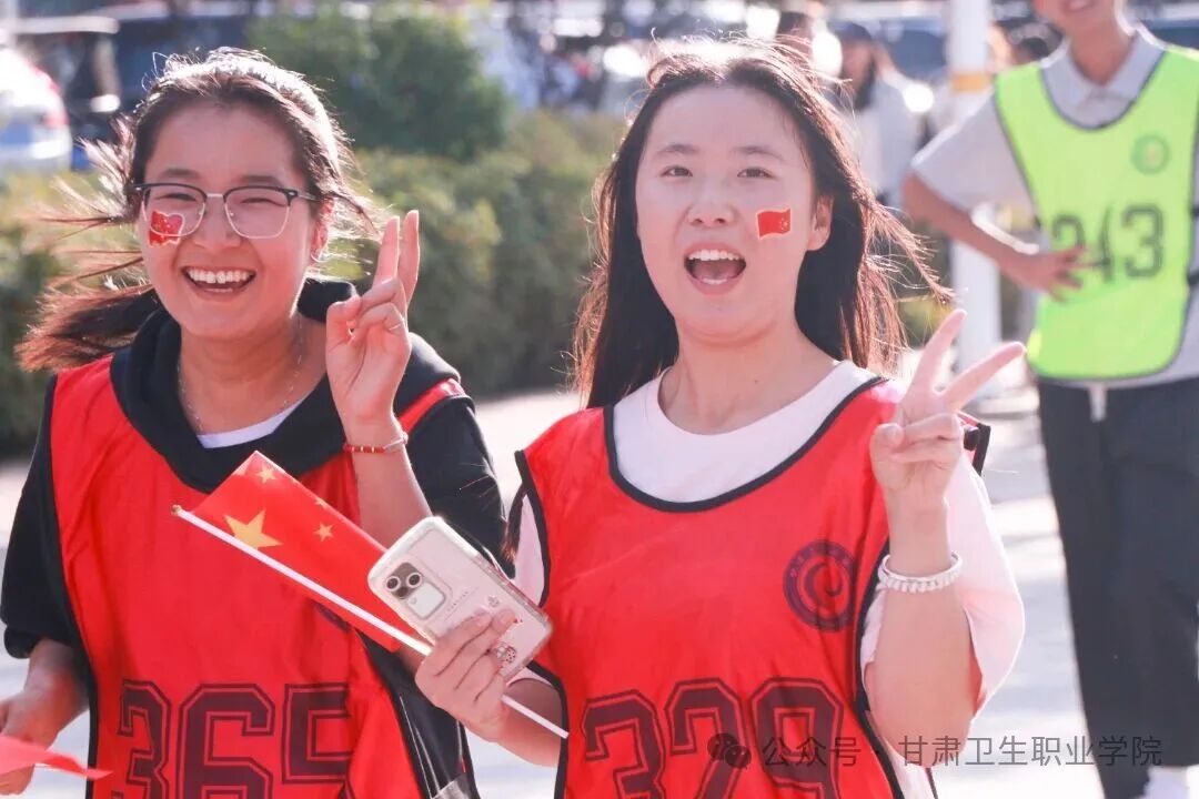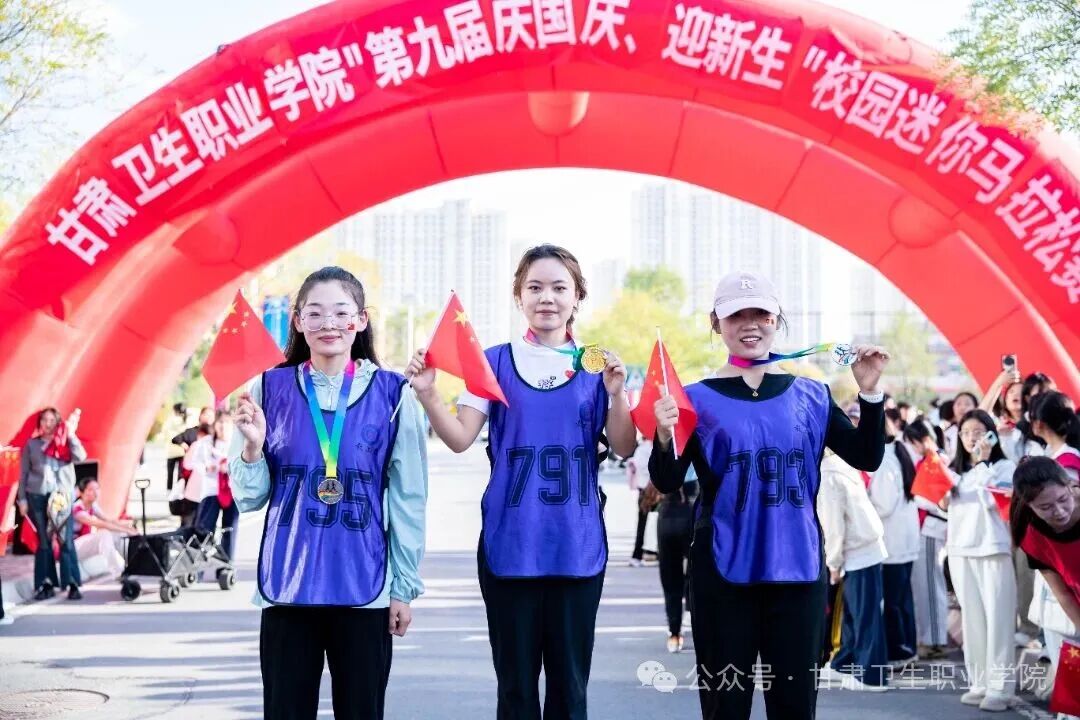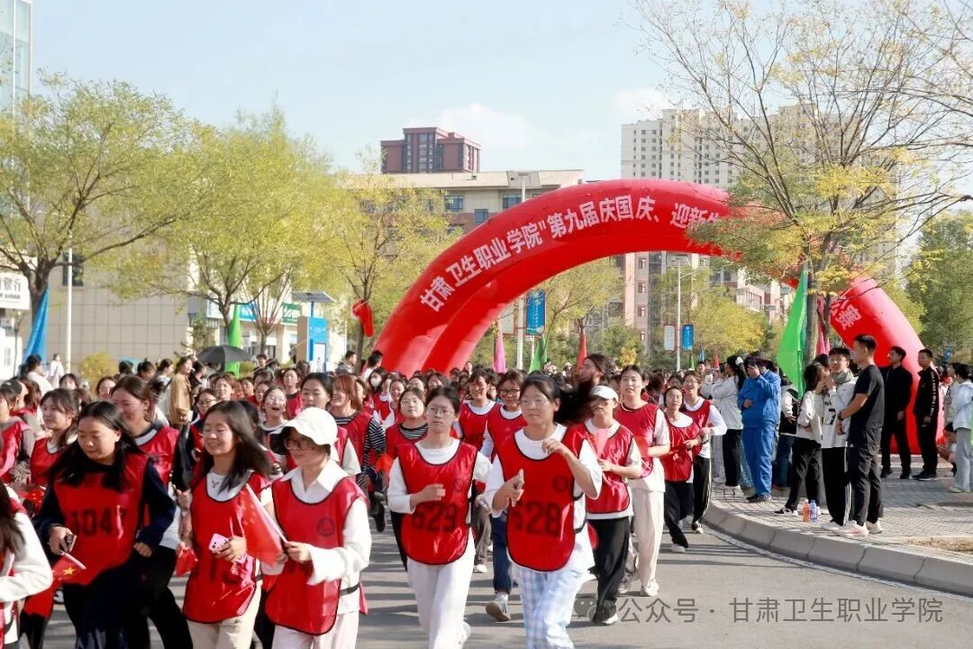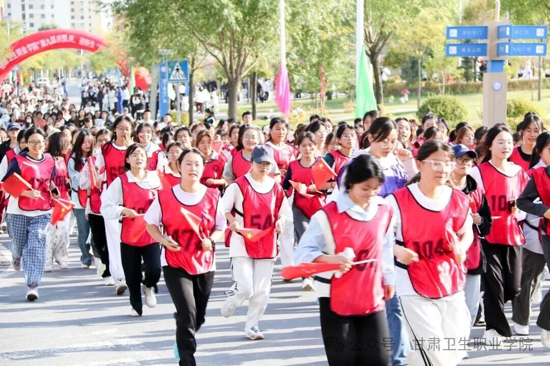 9月29日下午,伴随着金秋的清爽微风,甘肃卫生职业学院2025年“庆国庆 迎新生”校园马拉松比赛顺利开赛。2600余名师生挥舞着小国旗,从体育馆前广场有序出发,沿着环绕校园的赛道奋勇向前。