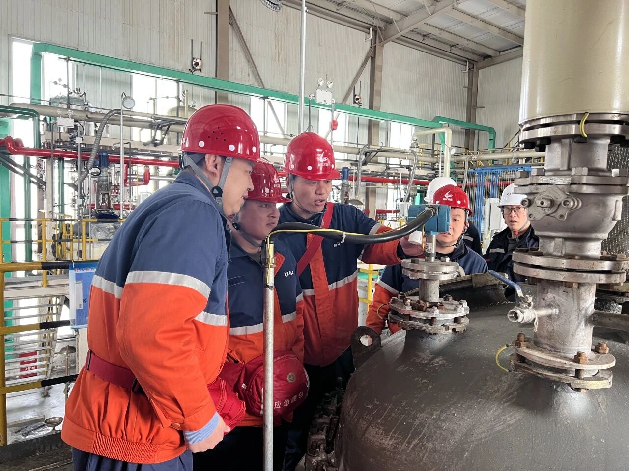 ▲石化集团工作人员在专精特新化工产业孵化基地开展检验检修